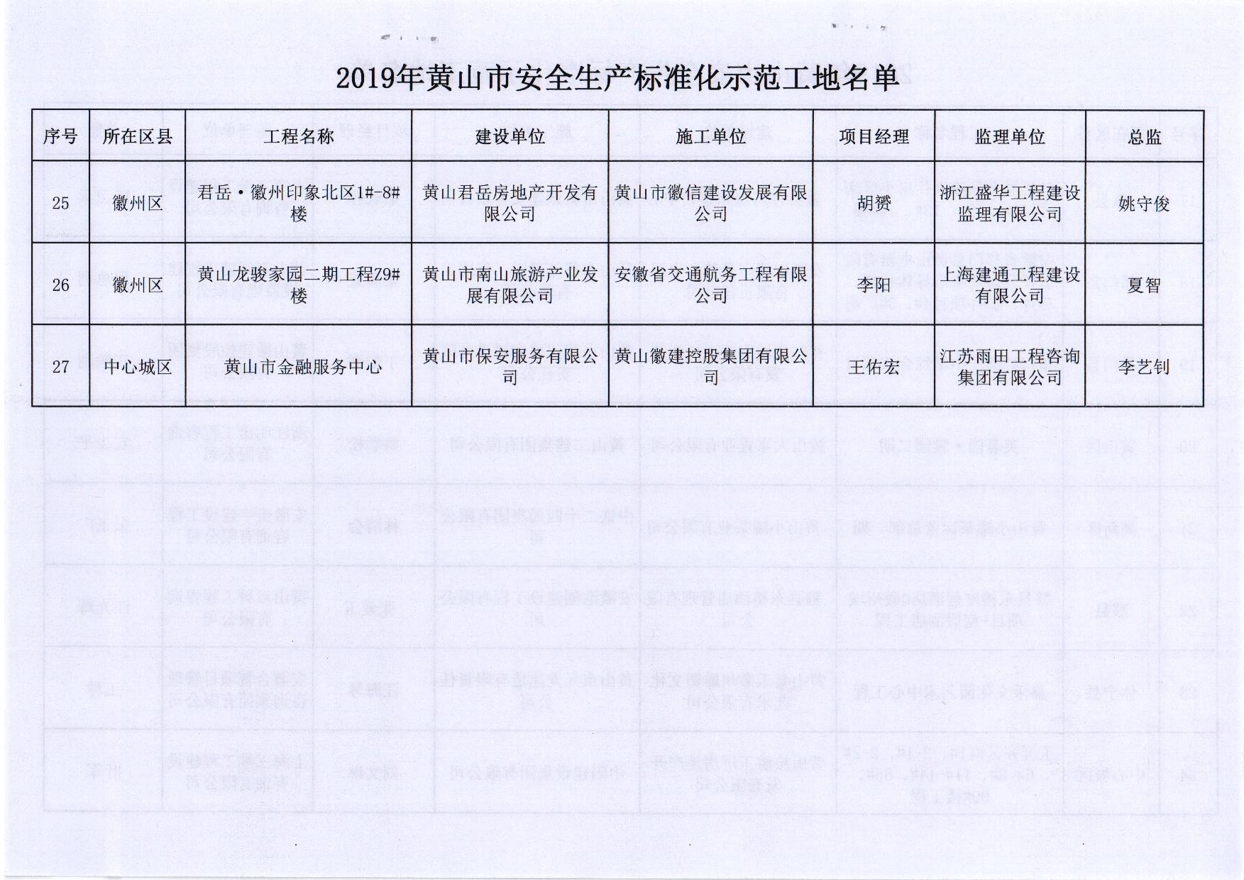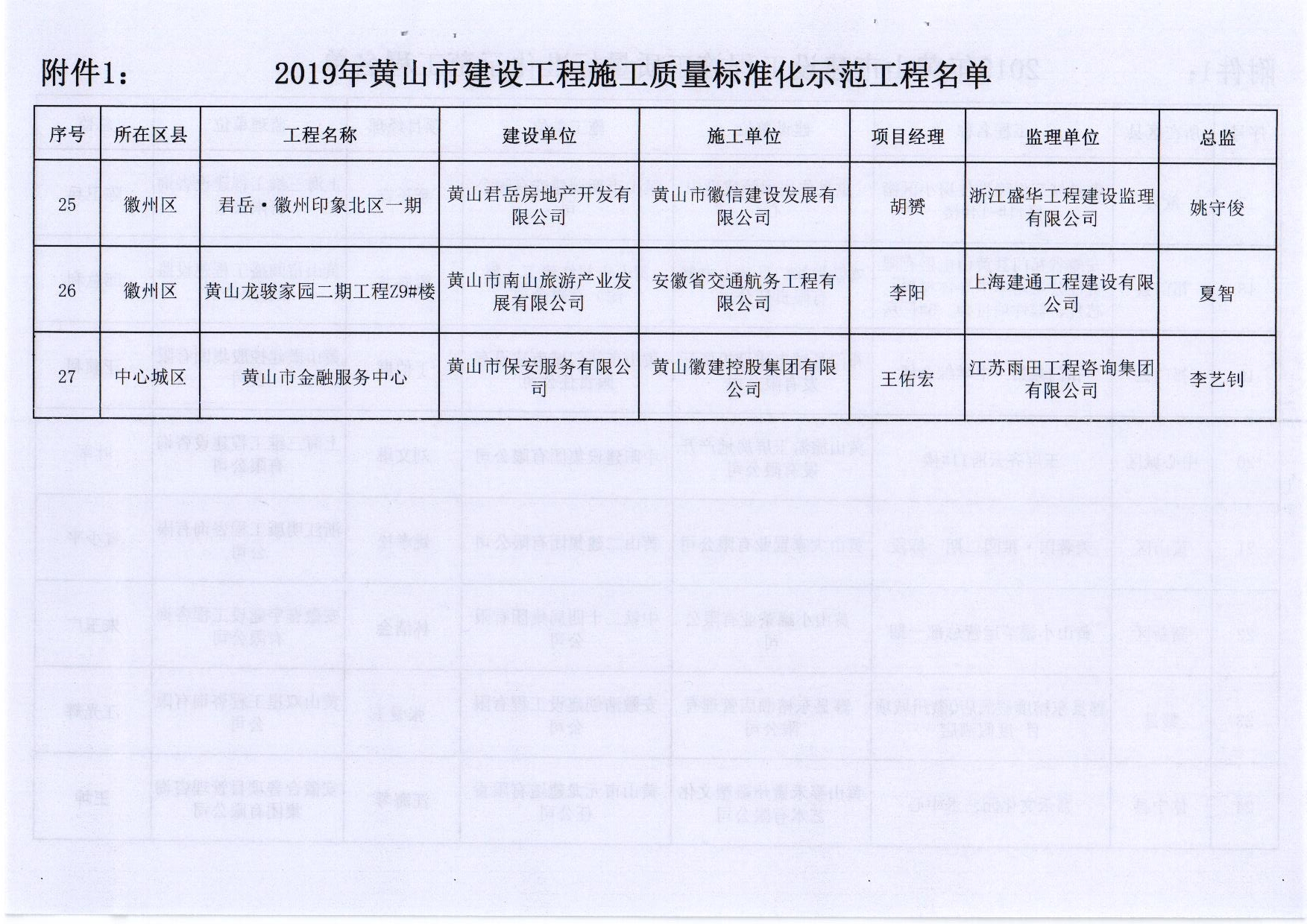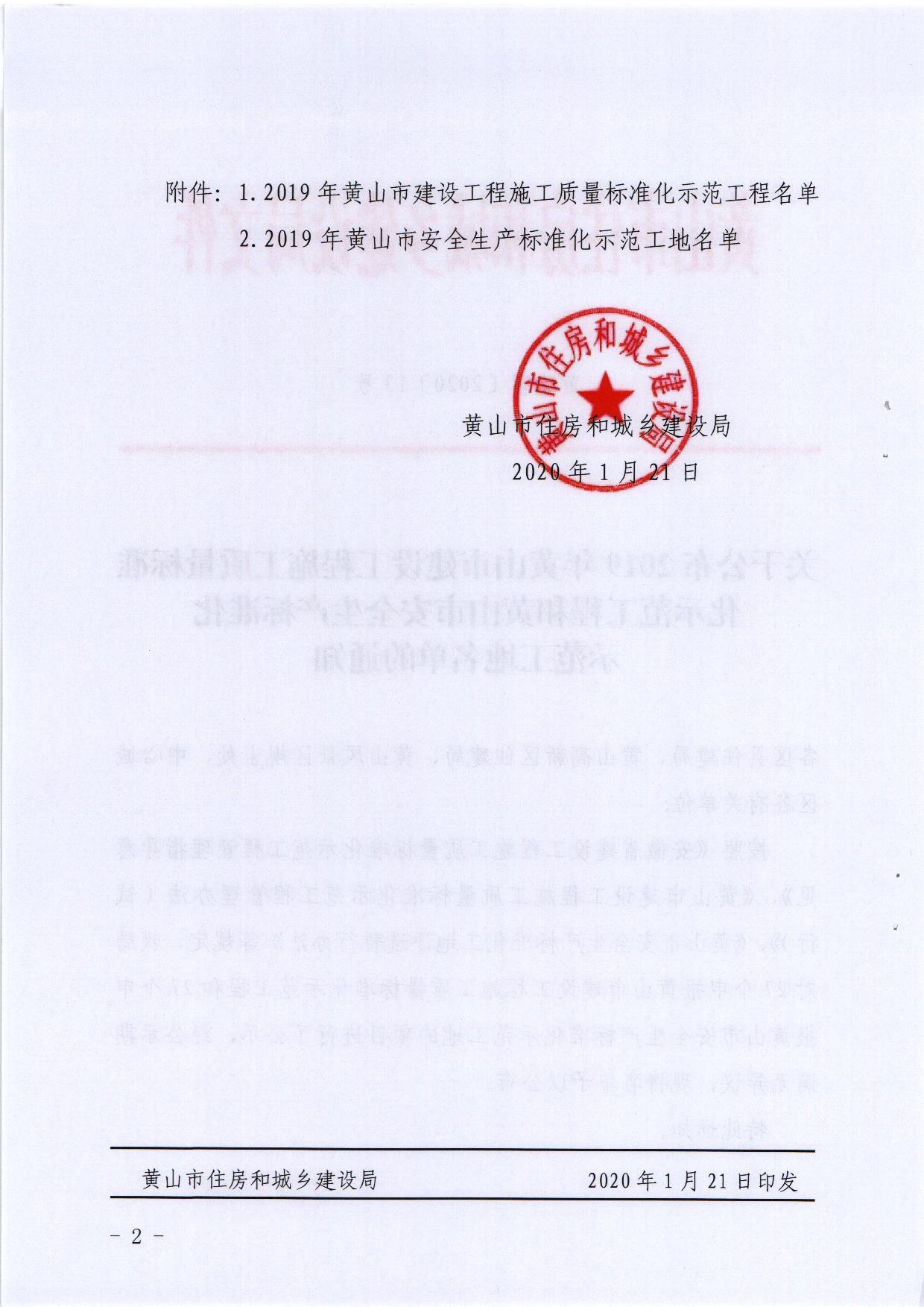 2019年度“黃山市建設(shè)工程施工質(zhì)量標(biāo)準(zhǔn)化示范工程和安全生產(chǎn)標(biāo)準(zhǔn)化示范工地”