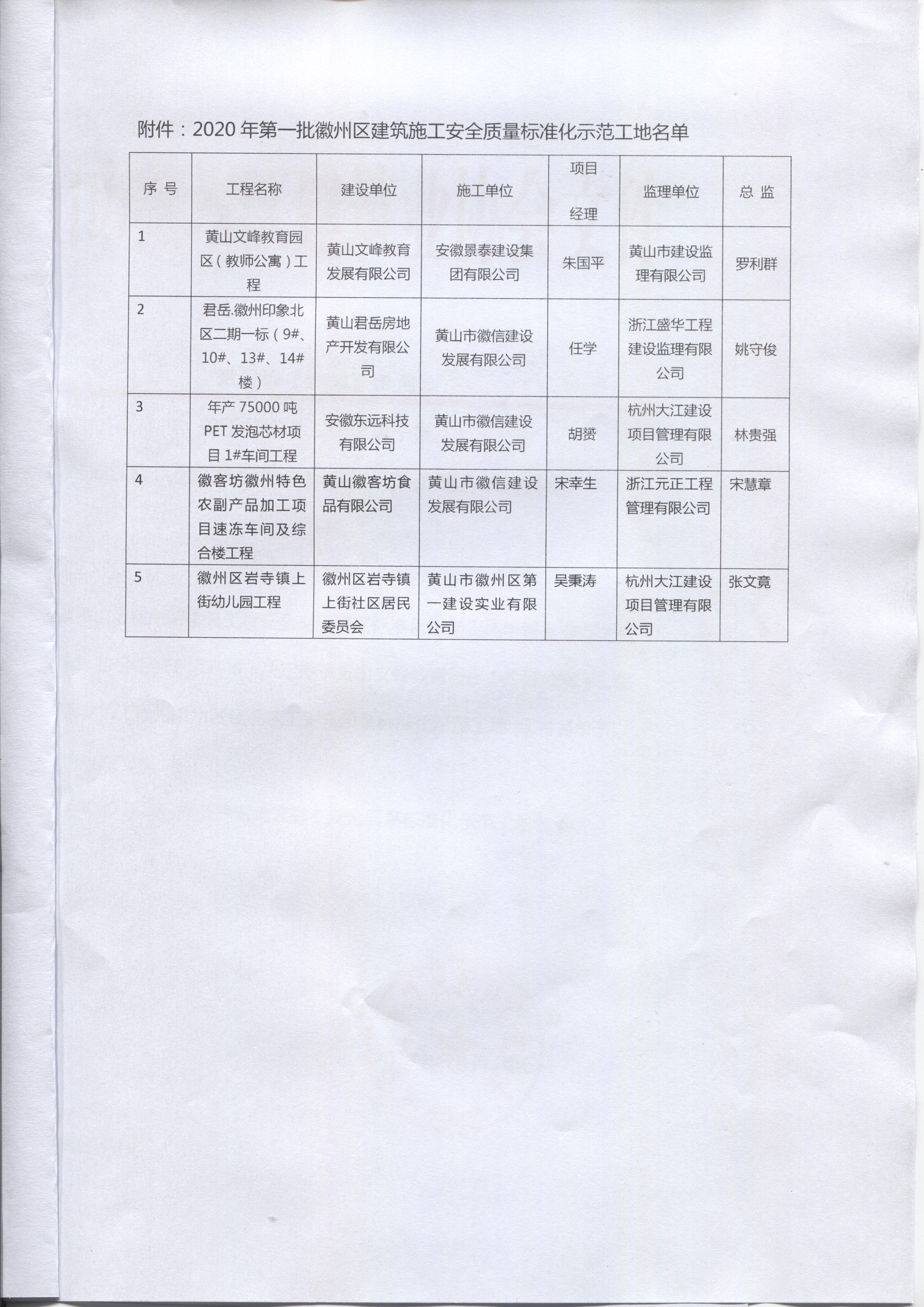 2020年度"徽州區(qū)建筑施工安全質量標準化示范工地"