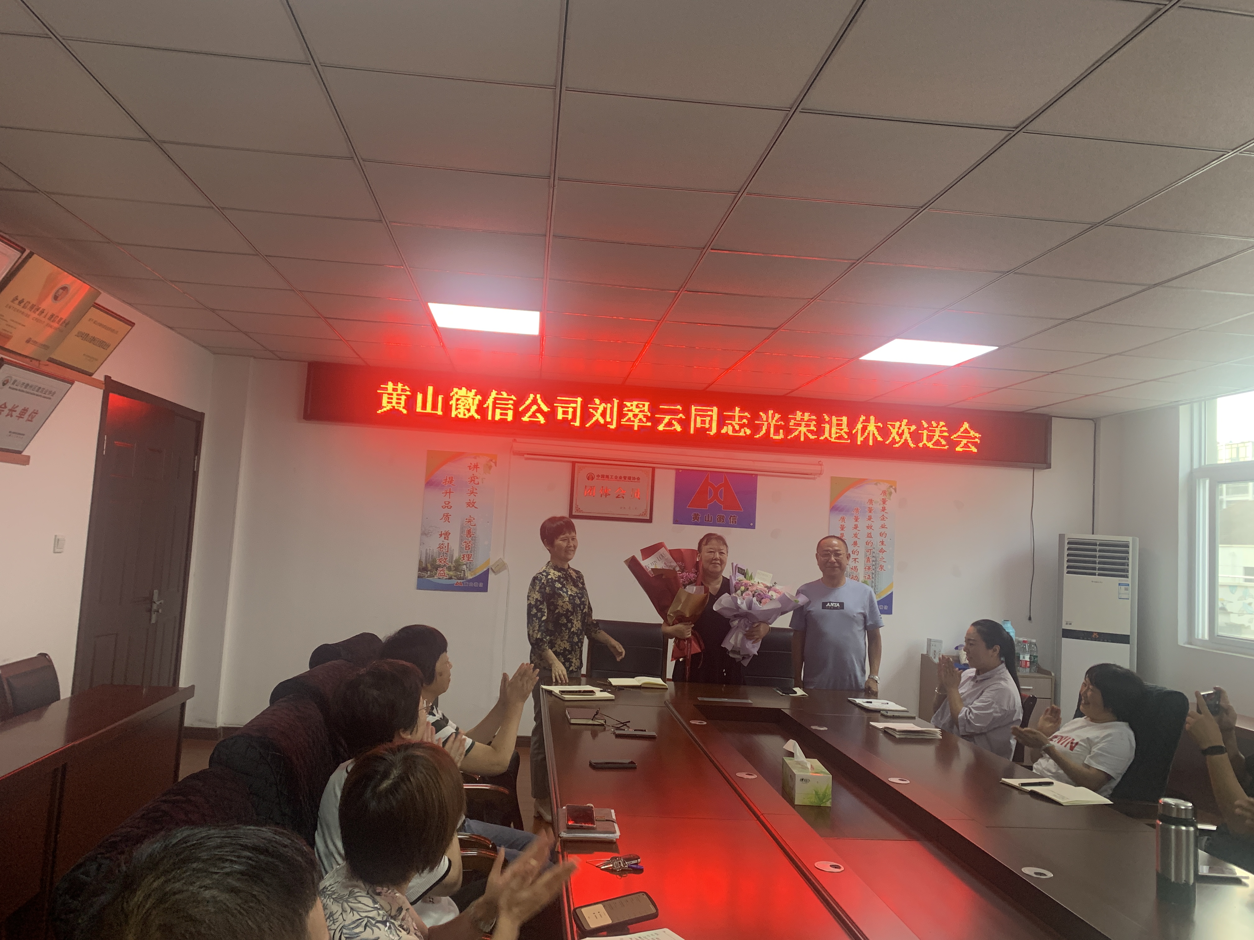 一路芳華,夕陽別樣紅。9月26日下午,黃山徽信公司為老職工劉翠云同志舉辦了光榮退休歡送會,祝賀其從徽信公司光榮退休,公司總經(jīng)理方澤華主持歡送會,副總經(jīng)理姚文東、副總經(jīng)理江文軍、各部門負責(zé)人及全體員工參加會議,原董事長占安平應(yīng)邀出席會議。
